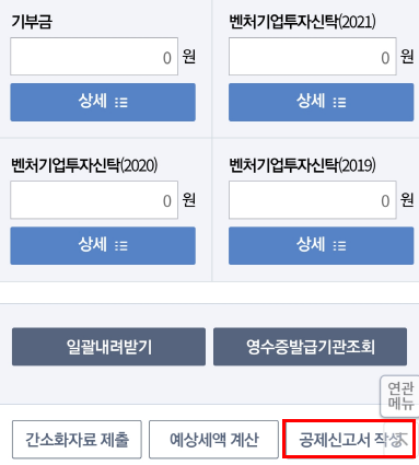 거기에는 공제신고서를 작성하는 버튼이 없어요!