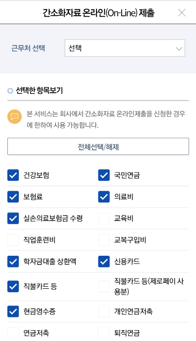 해당 서비스는 회사에서 간소화자료 온라인제출을 신청한 경우에 한하여 사용 가능해요!